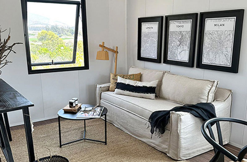 The FreedHome Essential 40 is a 40 m², hurricane-proof model (250 km/h wind speed).