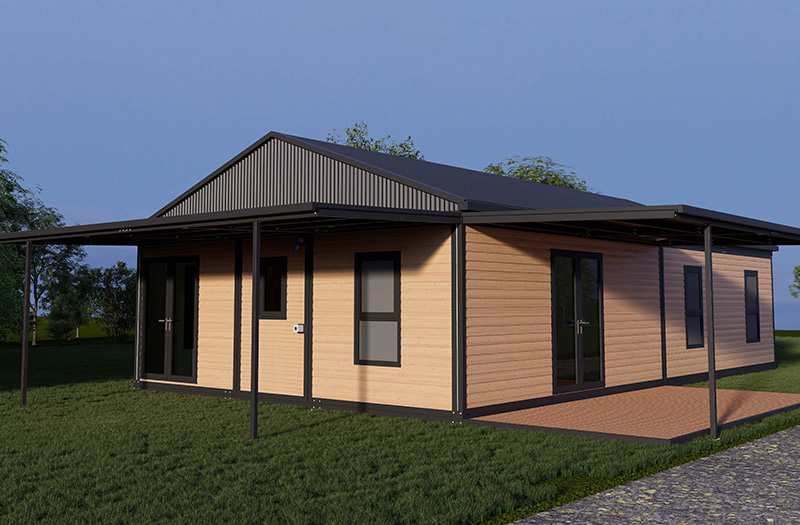 The FreedHome Family 80 is an 80 m² model, cyclone-resistant (withstands winds up to 250 km/h).