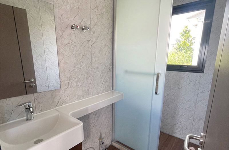 - Bathroom: Shower + Washbasin + Toilet